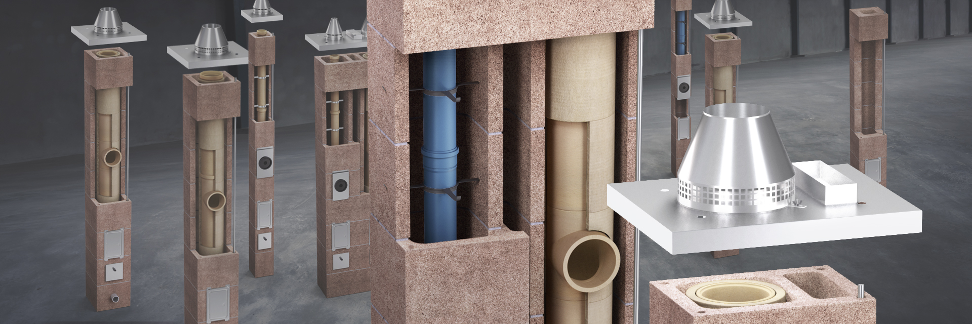 Über 250 mögliche Schornsteinkombinationen, Querschnitte von 8 bis 50 cm sowie unterschiedlichste Materialien von Keramik über Kunststoff bis Edelstahl lassen keine Kundenwünsche offen.